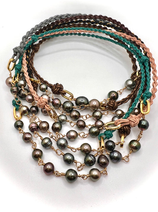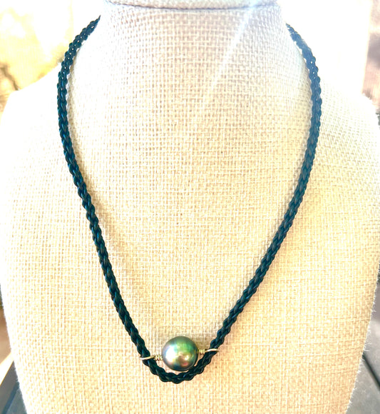 Lariat Leather Necklace with Baroque Tahitian Pearl